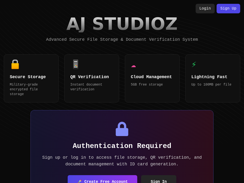 AJ STORAGE by AJ STUDIOZ is a file storage system that allows users to upload files and instantly generates QR codes for easy sharing and access. Store documents, images, and files securely with QR-based retrieval.