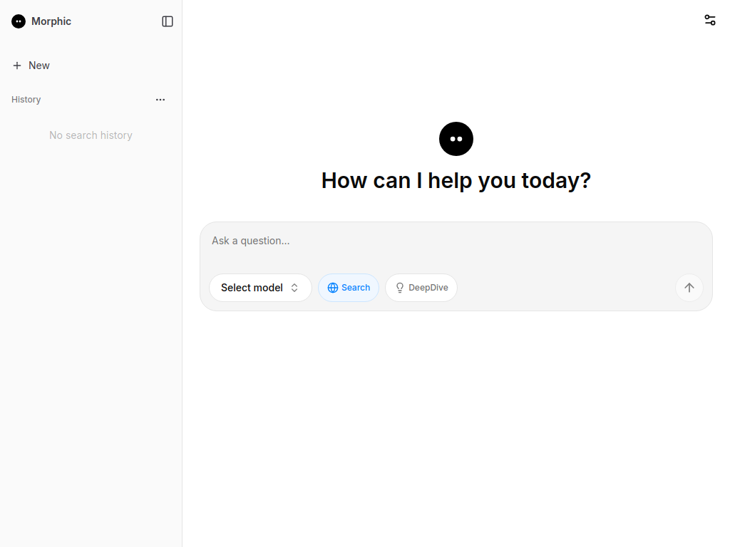 Morphic is a user-friendly web platform providing AI models and tools for interactive exploration, including model selection like DeepSeek R1, question-answering on topics such as Nvidia's growth and Tesla vs. Rivian comparisons, with features like Search and DeepDive.
