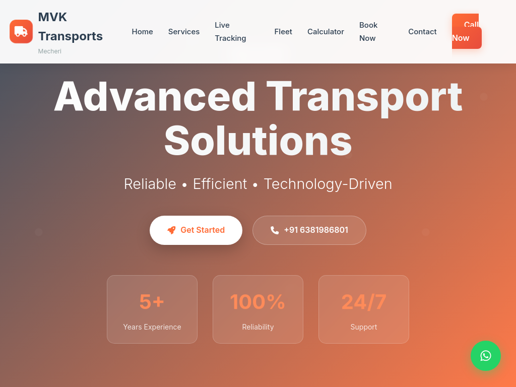 MVK Transports, operating since 2019 from Mecheri, provides reliable, efficient, technology-driven transport services with 5+ years experience, 100% reliability, and 24/7 support.