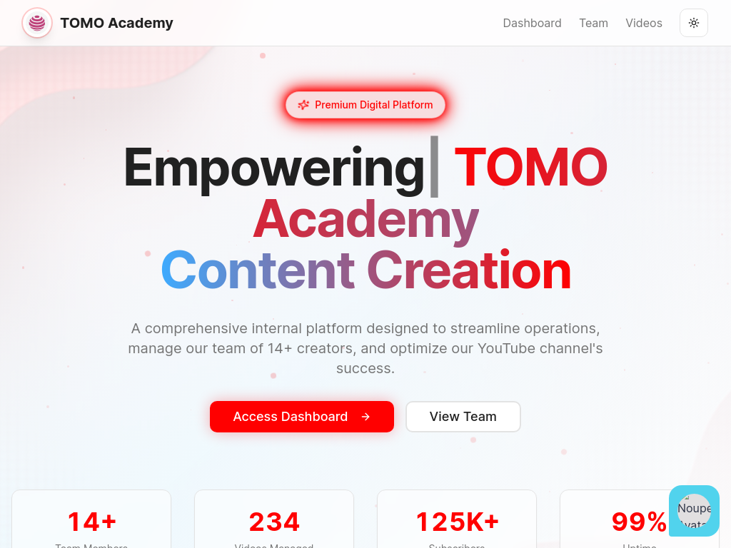 TOMO Academy is a premium digital platform and comprehensive internal tool designed to streamline operations, manage a team of 14+ creators, and optimize YouTube channel success, built specifically for content creation workflows.